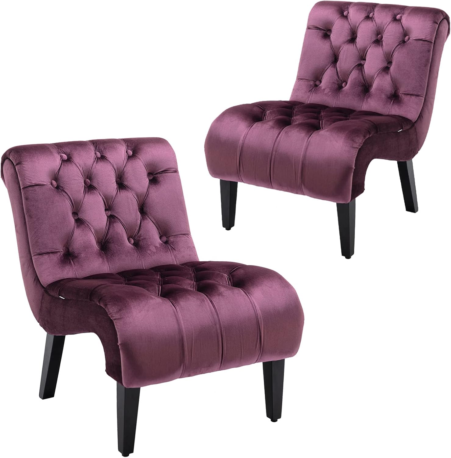 Features: ➤ Both the seat and backrest are made of high-density foam, ensuring both durability and comfort in a better way. ➤ The backrest is ergonomically designed to better fit your body and provides better comfort, you can easily to enjoy leisure time. ➤ The frame is made of solid plywood and the leg is made of rubber wood, which is not easy to crack and the weight capacity is 300 LBS. ➤ The surface is made of soft velvet, so it is soft and there is no need to worry about pilling. ➤ It features a special tufted button design and curved backrest that can provide comfort while adding style. ➤ Only 2 steps are needed to complete the simple installation, you just need to put the legs on! Specification:/b> Upholstery Material: Velvet Seat Fill Material: Foam Weight Capacity: 300 LBS Frame Material: Solid +PlyWood Leg Color: Black Leg Material: Rubber Wood Product Size: 33.86'' H x 22.83'' W x 30.71'' D Seat Depth: 20.47'' Back Height: 14.96'' Seat Height: 18.11'' Net /Gross Weight: 26.45 /30.86LBS